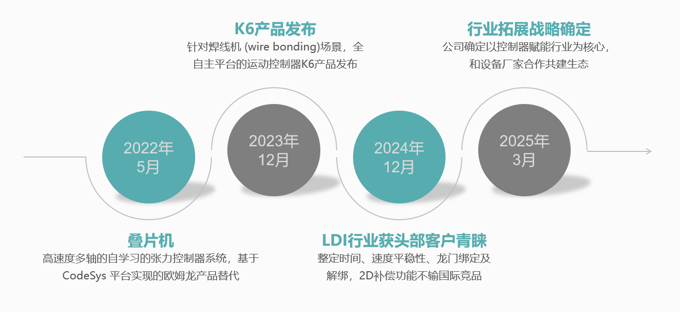 公司研发中心坐落于上海临港莘海科技园,在深圳和苏州有办事处。作为新质生产力领域的智能控制中枢构建者,聚焦纳米级运动控制与工业智能决策系统研发,以自主可控的高性能智能控制器为核心技术,致力于为半导体封装、精密光电、国防军工及新能源智造等战略领域提供赋能支持,构建覆盖从纳米级精密运动控制到产线级智能决策优化的全栈解决方案体系。